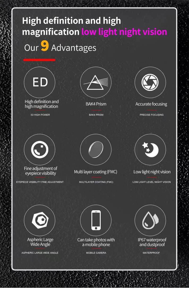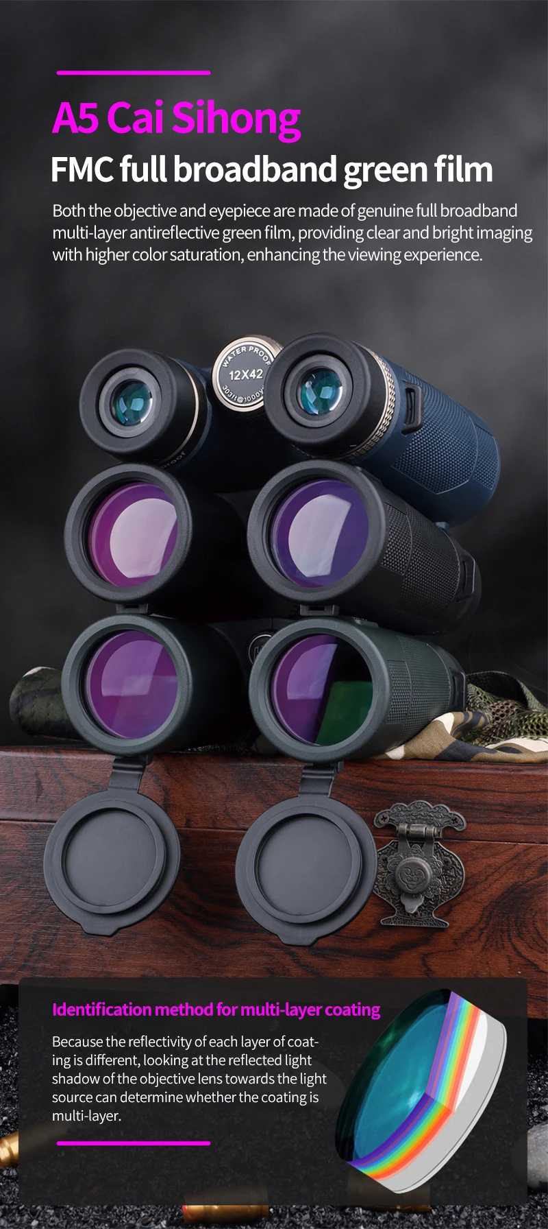 12×42 Professional Binoculars ED Lens BAK4 Prism Waterproof Metal Telescope for Outdoor Bird watching Camping Traveling