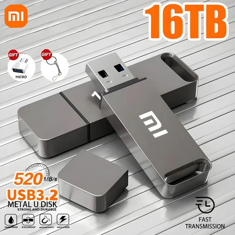 Xiaomi Original Pen Drive 16TB USB 3.2 Flash Drive High-Speed Pen Drive Type-C Metal USB Memory For Computer Storage Devices2025